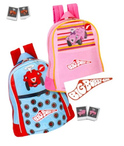 Farben: rosa oder blau Design: Bobby-Car Maße: ca. 26 x 29 x 13 cm Material: 420 D Nylon RV-Hauptfach Tragegriff, Schulterriemen ,Brustgurt